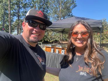Jim Bone's BBQ is a dream come true. I have always loved barbecuing for family and friends. After several of these cookouts, my family and friends would tell me how delicious my food was and how I should open up a restaurant or a catering company. I always thought to myself, "Man that would be so fun and cool to do". Remember, during those first few years, I had been predominantly a propane griller. I had a lot of fun with that but, soon decided to venture into the charcoal world and found so much more flavor there. Not long after that is when I wanted to see how smoking meat worked. One morning I told my wife that I was going to Home Depot and that I was going to buy a smoker. She laughed and said "your crazy". So I went and got the Home Depot special on a smoker, rushed home to get it setup, went to the store and got a bunch of different meats and corn on the cob, filled up the smoker with a bunch of hickory and fired it up. With no idea how to smoke meat or what temperature I needed, I smoked out the whole neighborhood! After a few hours I guessed it was time to pull the corn off the grill. With some friends over we tried the corn and it was amazing. I thought to myself that I was a natural and how easy smoking food is. So we waited a few more hours and pulled off the meats. We tried the meat. Let's put it this way, it was so bad we threw all the food away and ordered pizza. I'm so embarrassed to share this story but, it was pretty funny and humbling. That's when i realized I needed to do some homework. This is also when my business partner and good friend Jo-Jo comes into the story. From then on I was smoking meat every weekend. Getting up at 3 in the morning on the weekends just to get started. Who was there every weekend just to keep me company? Jo-Jo was. We had a lot of quiet early morning to talk about our dreams of barbecuing for a living. I didn't know that his love of barbecue was like mine until one morning he asked if he could participate on the cook. I said "of course you can". He ended up doing the whole thing himself. i asked him how he knew how to do everything to the tee step by step? He told me from all those early morning weekends, that he has watched me. That's when I knew I found a good business partner. As the time passed, the techniques were born. We cooked and barbecued every chance we got. We developed a business model, and had a custom BBQ trailer built. The dream has become a reality. We are ready to get out there and show the world what we got! Jim Bone's BBQ is here to make your event the most memorable it can be.